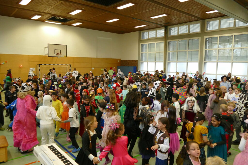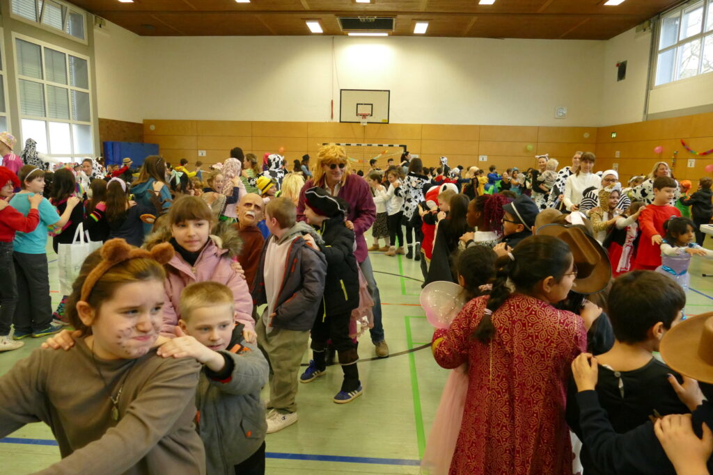 Am Freitag den 13.02.26 fand in der bunt geschmückten Sporthalle der Stirumschule wieder die alljährliche Faschingsparty für alle Grundschülerinnen und Grundschüler statt.
