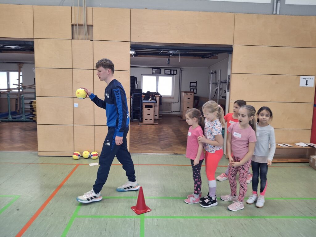 Am Freitag, den 16.01.26, fand für die Klassenstufe 2 ein Handballtag im Rahmen des Aktionstages des Handballverbandes Baden-Württemberg in Zusammenarbeit mit der AOK statt. In einer handballspezifischen Sportstunde, die von engagierten Freiwilligen des ortsansässigen Vereins TSG Bruchsal durchgeführt wurde, konnten die Kinder an verschiedenen Stationen ihr Können unter Beweis stellen. Auf dem Programm standen unter anderem Werfen und Fangen, Koordinationsübungen, Schnelligkeit, Zielwerfen und Prellen. Mit großer Begeisterung meisterten die Schülerinnen und Schüler die Aufgaben und zeigten viel Einsatz. Als besondere Motivation erhielt jedes Kind einen „Hanniball“-Pass, das offizielle Spielabzeichen für Kinder. Der Handballtag bereitete allen viel Freude und war auch durch die aktuell laufende Handball-EM der Männer ein echtes Highlight.