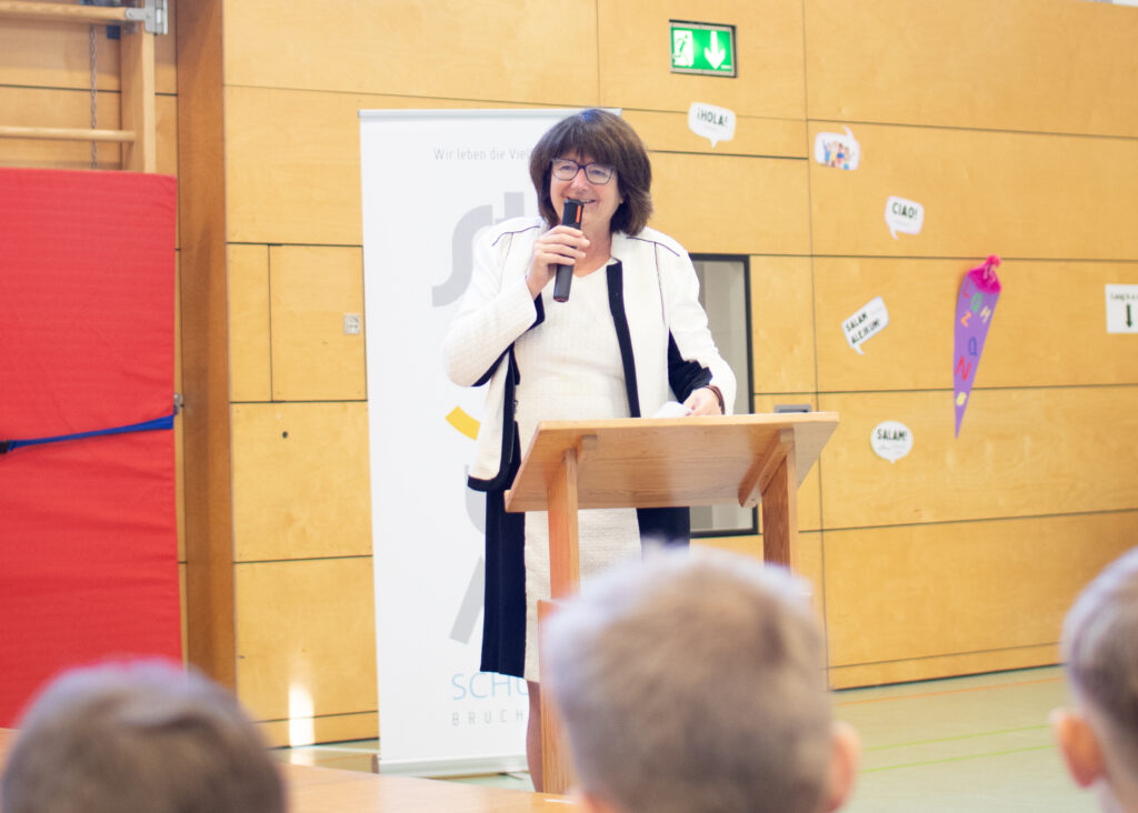 Als die 2.Klassen sich mit einem „Herzlich willkommen an der Stirumschule“ verabschiedet hatten, folgte die Begrüßung durch Schulleiterin Frau Blank, die den frischgebackenen Erstklässlern als wichtigste Personen dieses Tages einen guten Start wünschte.