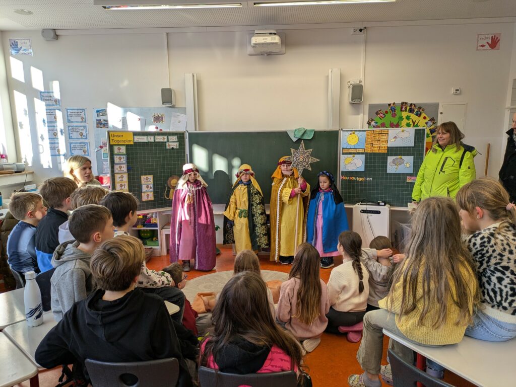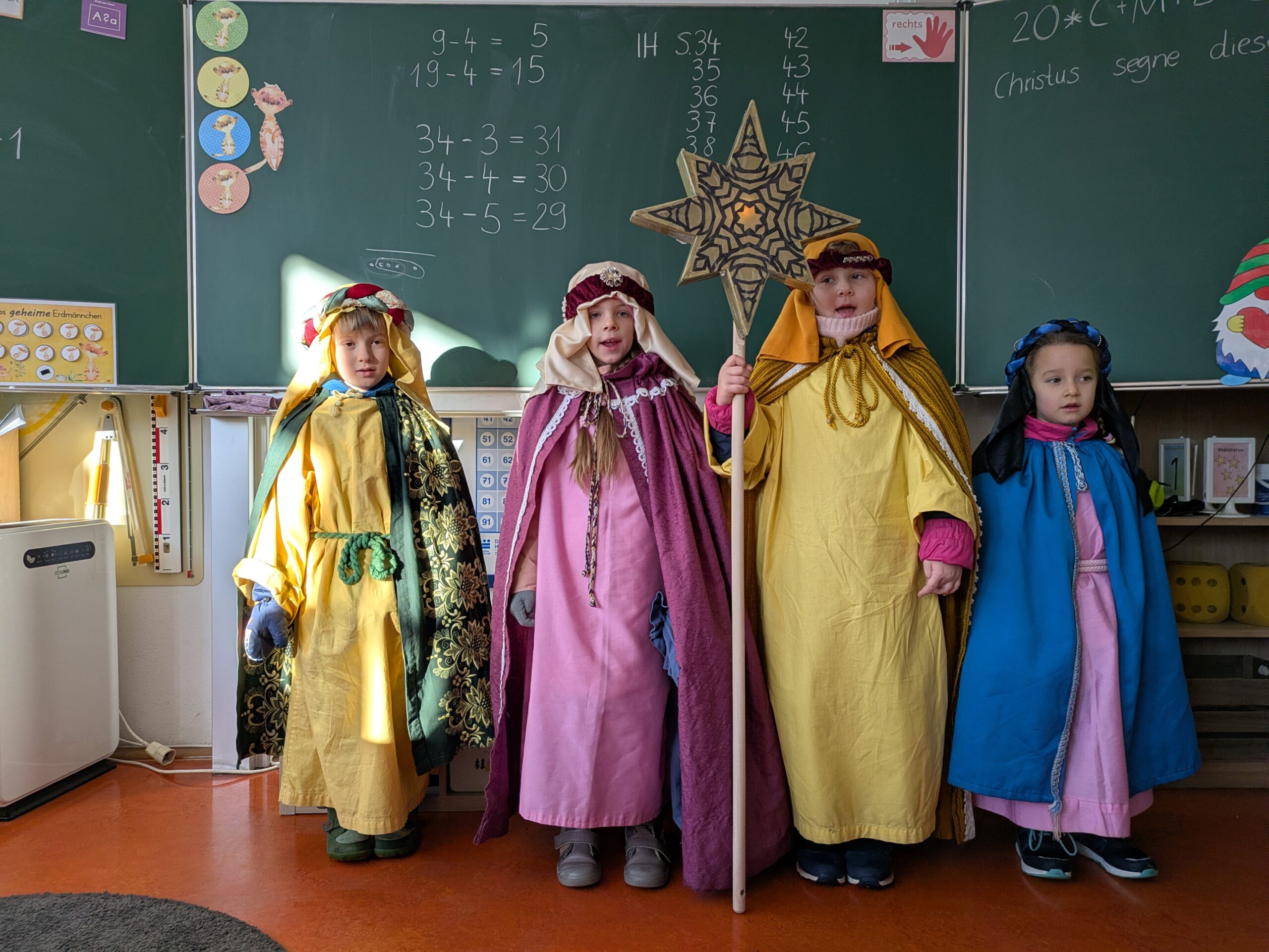 Am 7.1. besuchte eine Gruppe Sternsinger der Edith Stein Gemeinde Bruchsal (bisher St. Vinzenz) die Stirumschule. Mit ihren prächtigen Gewändern und dem funkelnden Stern sorgten sie für eine ganz besondere Atmosphäre in den Klassenzimmern. Sie brachten den traditionellen Segen 20*C+M+B+26 und berichteten den Schülern, warum sie dieser Tage als „Heilige Drei Könige“ verkleidet unterwegs waren. Sie sammelten in den Bruchsaler Haushalten unter dem Motto „Schule statt Fabrik – Sternsingen gegen Kinderarbeit“ Geld, um Hilfsprojekte für Kinder in diesem Jahr vor allem in Bangladesch und aller Welt zu unterstützen. Als Dank für ihren ehrenamtlichen Dienst erhielten die Sternsinger auch viele Süßigkeiten, die untereinander aufgeteilt werden. Vielleicht hat nun der ein oder andere Stirumschüler auch Lust bekommen im nächsten Jahr in ein königliches Gewand zu schlüpfen um gemeinsam Segen zu bringen und Hoffnung zu schenken.