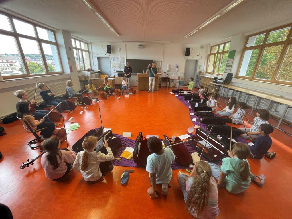 Wir freuen uns sehr, dass wir seit diesem Schuljahr eine Streicherklasse in Kooperation mit der Musik- und Kunstschule Bruchsal bei uns einrichten können. Für eine Streicherklasse können sich Kinder der zweiten und dritten Klassen anmelden, die gerne ein Streichinstrument lernen wie Geige, Bratsche oder Cello.