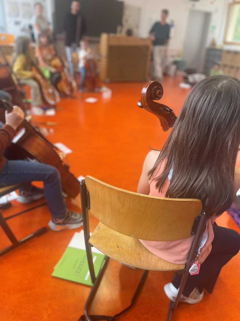 Mit Freude wird in den Stunden gesungen, gezupft, sich bewegt und bald auch mit dem Bogen gestrichen!