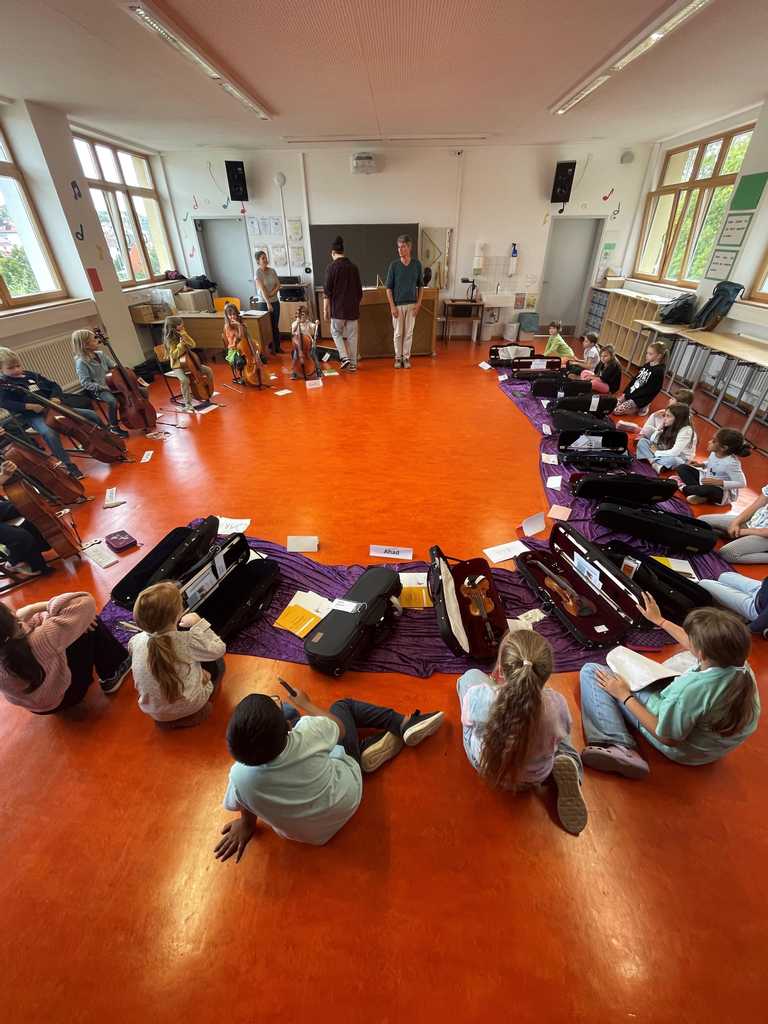 Wir freuen uns sehr, dass wir seit diesem Schuljahr eine Streicherklasse in Kooperation mit der Musik- und Kunstschule Bruchsal bei uns einrichten können. Für eine Streicherklasse können sich Kinder der zweiten und dritten Klassen anmelden, die gerne ein Streichinstrument lernen wie Geige, Bratsche oder Cello.